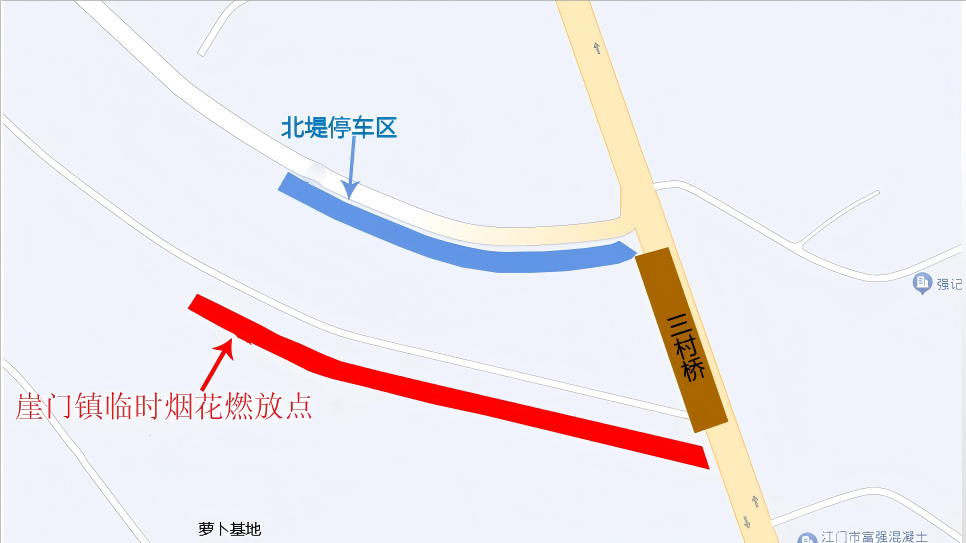 (五)崖门镇。如图5所示,位于崖门镇甜水村甜水坑沿河路边,以政府现场指示区域为准。