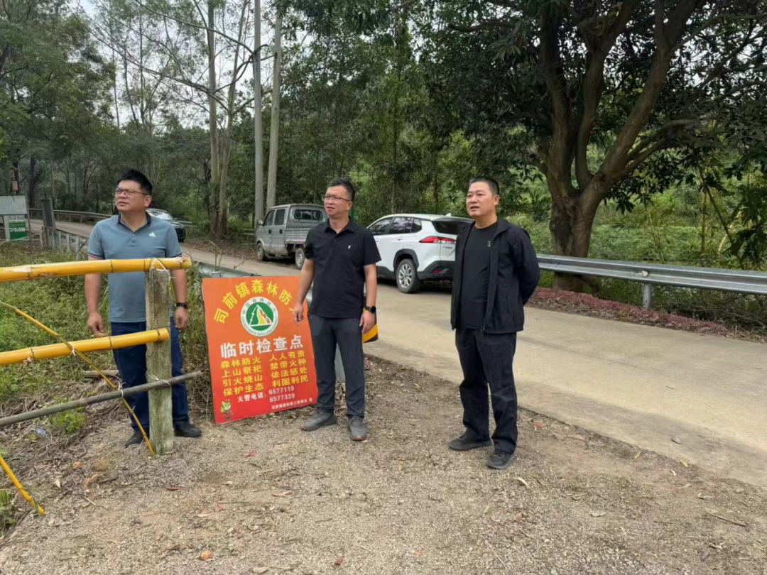 近日,镇党委书记梁志成和党委副书记、镇长胡健锋带队深入辖区森林防火点检查工作,重点排查消防安全隐患点,要求务必提前备足应急物资,做好马鞍山登山路段的药物消杀工作,同时科学安排值守人员,严格落实值班人员坚守岗位、履职尽责。专职消防队和森林防灭火半专业消防队伍要保持通信畅通,时刻待命,确保做好重阳节前后森林防火安全。
