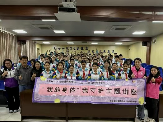 为扎实推进未成年人保护工作,切实提升辖区未成年人自我保护意识与风险应对能力,近日,司前镇妇联联合新会一中附属凤山湖中学,邀请新会区向日葵社工中心服务总监、新会区校园法治宣讲团成员——林文静老师,举办“我的身体我守护”专题讲座,以专业力量护航未成年人健康成长,150多名中学生参加了本次活动。