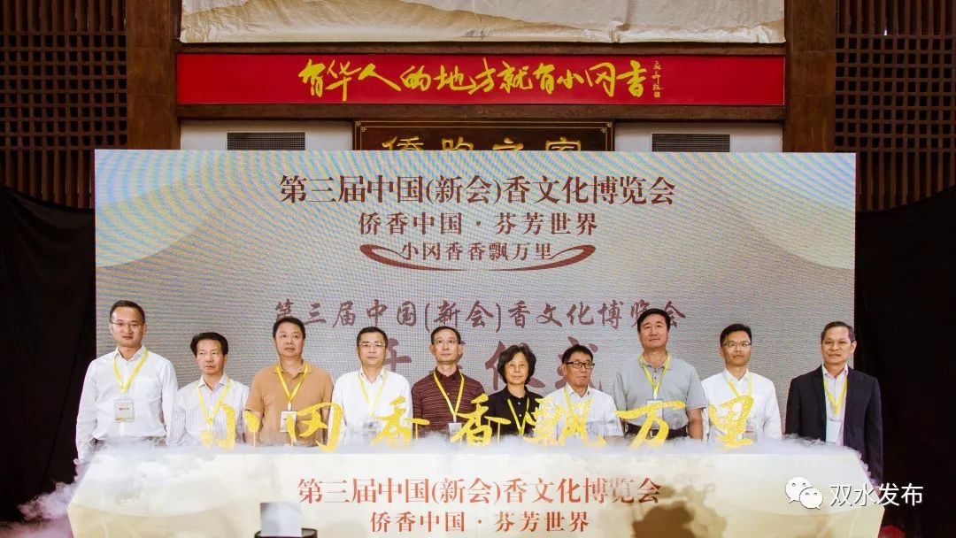 第三届中国(新会)香文化博览会由新会区双水镇小冈香业联合会主办,新会区小冈香业城承办,中国日用杂品工业协会、香港香业协会、台湾香业协会协办。中国日用杂品工业协会副会长肖卓玲,中国日用杂品工业协会香业分会常务副会长林清海,国家发改委重大项目稽查办原司长马最良,江门市人大常委会副主任甄仁旺,江门市人民政府副市长蔡德威,江门市政协副主席蓝华、费伟东,新会区区长梁明建等领导出席了活动。