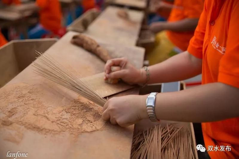 手搓香非常考究制香人的手上功夫。制香工人需先将香粉与水按一定的比例混合并搓成团状(即香胶),不能稠也不能稀,然后把香骨放置在香胶上搓匀,不能手抖偏离香骨。工序完成后,还需要合适的天时,经纯天然晾晒干燥才算制作完成。