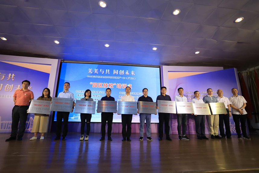 研讨会上还为学院新一届校企合作咨询委员会的专家颁发了聘书。学院向6个园区技校联合体、10个园区技校培训点、3个园区技校技能大师工作站颁发合作牌匾,与8家企业签订了新一学期校企双制班的合作协议。通过搭建“园-校”一体技能人才培养载体,聚焦园区产业发展系统型、储备型方向的技能人才培养,就近就地面向园区企业开展技能培训,以点带面解决产业集群和产业链技术发展“卡脖子”问题。