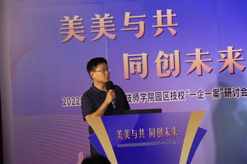 王涛同志就当前校企合作开展情况和工作展望作了汇报,她强调,深化校企合作是技工院校发展的必由之路,学院将以“园区技校”为切入点,不断创新校企合作模式、丰富产教融合的内涵,更好地为企业为社会培养人才。