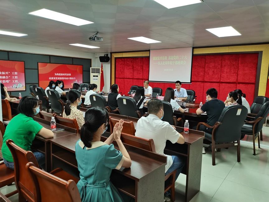 为庆祝中国共产党成立101周年,进一步加强年轻干部职工队伍建设,用党的奋斗历程和伟大成就鼓舞斗志、明确方向。7月1日,区人社局召开主题为“强国复兴有我 喜迎党的二十大”年轻干部座谈会,区人社局党组书记、局长聂健雄出席会议并讲话,党组成员、副局长林健欣主持会议,局青年干部职工20余人参加会议。