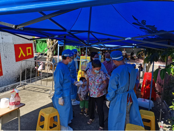 “请出示您的证件,谢谢!”“请张开嘴巴,啊……”这是在检测采样点听得最多的两句话,从汗流浃背到声音沙哑,变的是声音,不变的是热情,全体工作人员不惧烈日,与疫情赛跑,在提升效率的同时,将温暖带到千家万户,专门为老年人、孕妇、儿童、残疾人等特殊群体开设了绿色通道。