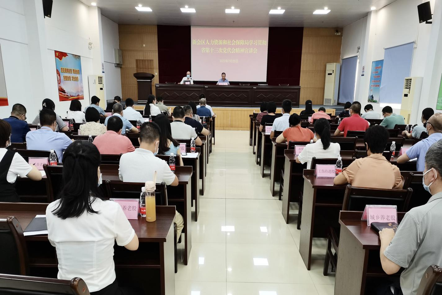 7月25日下午,根据区委组织开展学习贯彻省第十三次党代会精神宣讲活动的部署要求,区人社局组织召开深入学习贯彻省第十三次党代会精神专题宣讲会,宣讲会邀请了区委党校李红卫常务副校长进行宣讲辅导。区人社局党组书记、局长聂健雄主持会议,区人社局中层副职及以上干部,属下各事业单位负责人参加了本次学习。