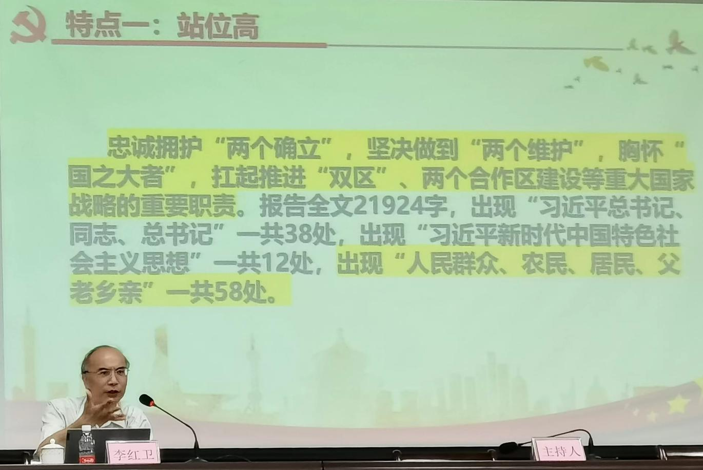 会上,李红卫同志以“持续深化落实省委“1+1+9”工作部署,推动学习贯彻省第十三次党代会精神走心走深走实”为主题,引导我们深刻认识省第十三次党代会的重大意义,学习理解省委“1+1+9”工作部署最新要求。李红卫同志总结了省党代会报告站位高、粤味浓、内容实三个鲜明的特点,深入浅出地阐述了未来五年广东发展的主要目标和整体要求,对我们全面深入学习领会省第十三次党代会精神具有重要指导意义。
