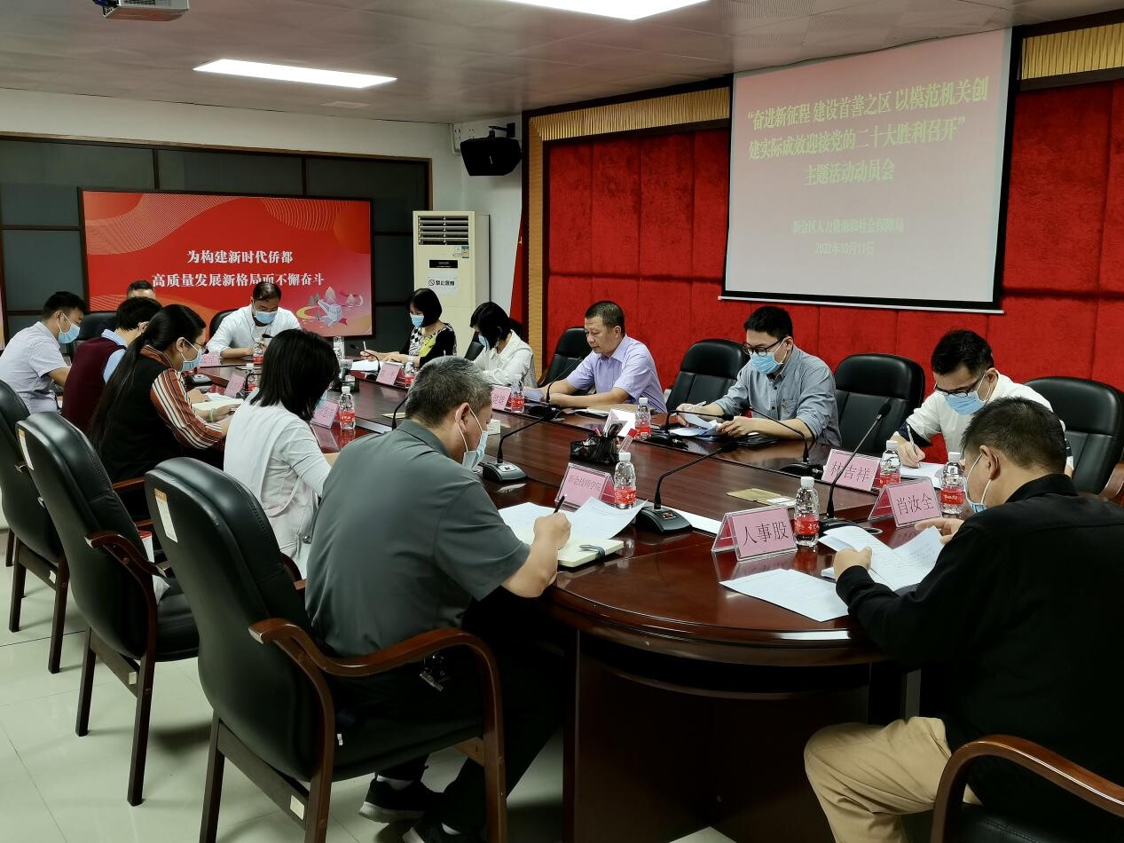 10月11日,区人社局召开“奋进新征程 建设首善之区 以模范机关创建实际成效迎接党的二十大胜利召开”主题活动动员会,对人社局开展主题活动进行部署安排。局党组书记、局长聂健雄同志出席会议并作动员讲话,各党支部书记,部门负责人参加会议。