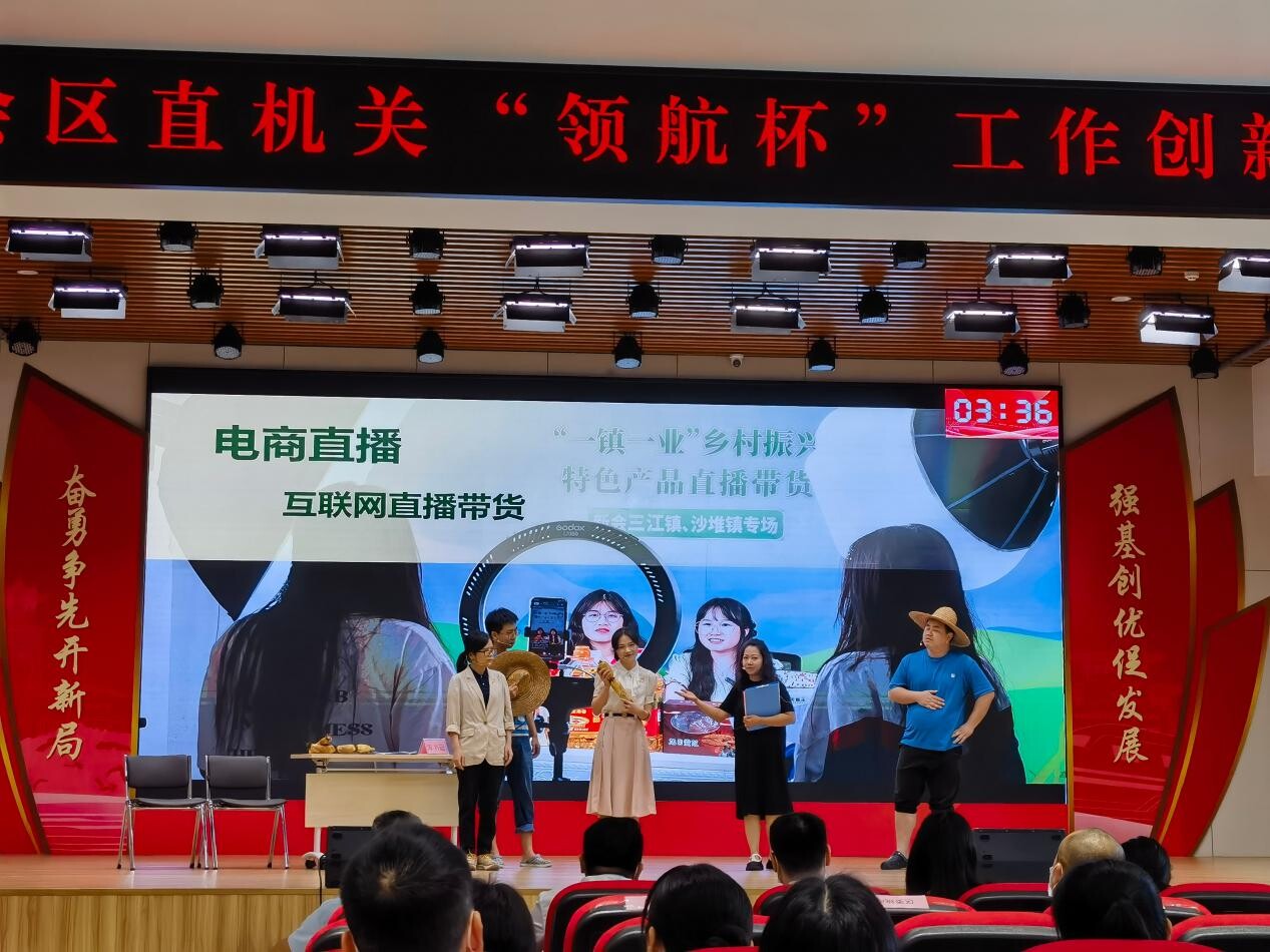 大赛于6月15日上午正式开始,比赛项目分别为:发展提质、服务增效和党建赋能。在“发展提质”类项目组中,区委组织部、区文广旅体局、区人社局等16支比赛队伍同台竞技,区人社局参赛项目《按下乡村振兴快车键,精打电商助农组合拳》,经过精心的编剧、排练,最终以PPT和情景表演的方式呈现人社党建引领的创新工作,荣获该类项目二等奖。