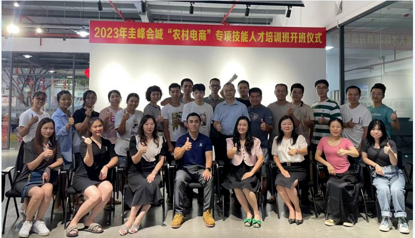 当前,新会区上下正举全区之力扎实推进“百县千镇万村高质量发展工程”,大力实施区镇经济一体化改革,统筹区的优势、镇的特色和村的资源,推动城乡区域协调发展,向更高水平迈进。区人社局党组发挥先锋模范作用,制定《“一镇一业”乡村振兴人才培育计划工作方案》,以责任落实到基层党组织,局领导和党员干部、业务骨干常态化下乡镇调研,结合人社在技能培训、人才引育、社会保障、劳动领域等方面的职能,倾听基层诉求,收集企业和群众需求,分批召开入住产业园的项目团队成员对话会,征求对专业发展和激励机制的意见和建议。校企紧密合作,以农村电商人才培养和技术服务为纽带,激发企业投入专业群建设的内生动力,找准乡村振兴的支撑点,聚焦各乡镇的职业技能培训,开展一系列“送技下乡”培训项目,助推新会区乡村振兴跑出“加速度”。