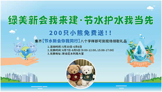 活动期间,新会区水利局推出了“200只节水小熊免费送”福利活动,只要集齐“节水新会你我同行”八个字样,即可在6月7日到6月9日到现场领取节水文创宣传品“节水小熊”。
