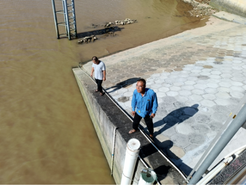 ▲局党组成员、副局长利炳全到西江沿线开展防汛检查。