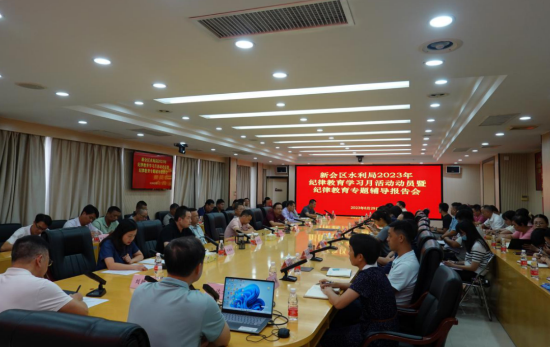 为深入推进全面从严治党,部署推进今年纪律教育学习月各项活动,全力锻造忠诚干净担当、科学求实创新的水利铁军,8月29日下午,区水利局组织召开2023年纪律教育学习月活动动员暨纪律教育专题辅导报告会。局中层副股以上干部、机关全体在职党员,以及直属事业单位负责人参加了会议。局党组成员、副局长黄碧晶主持会议。