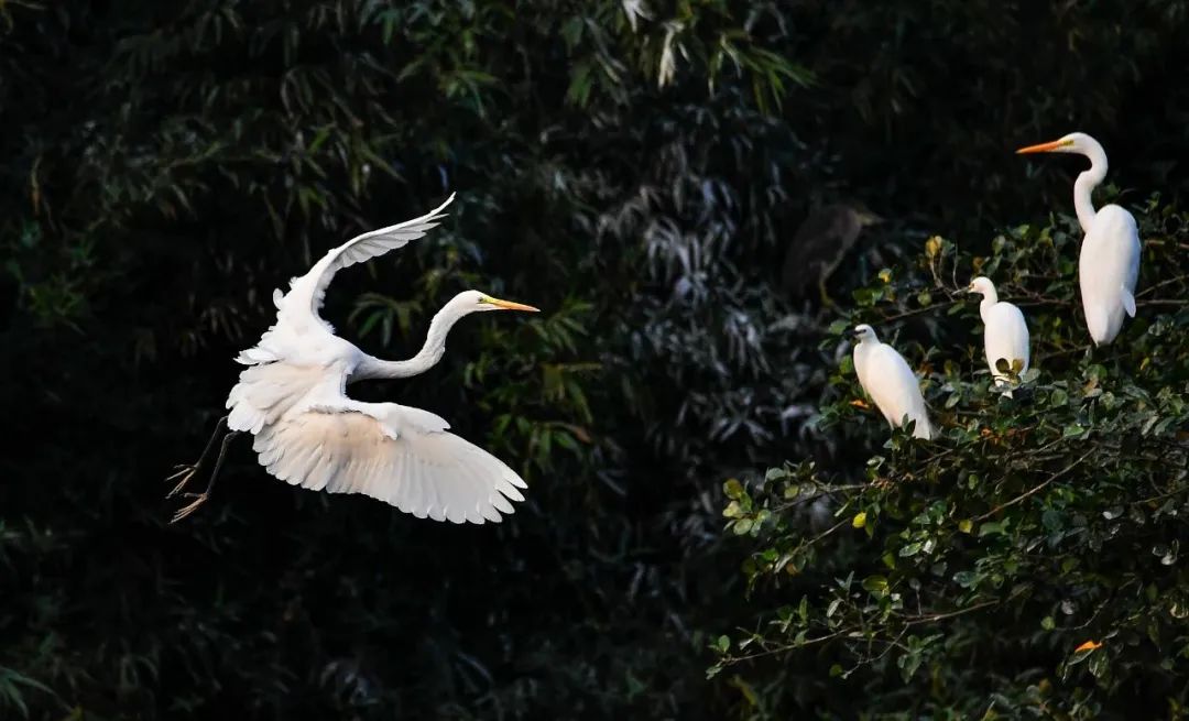 小鸟天堂国家湿地公园,因著名作家巴金的散文名篇《鸟的天堂》而得名,是一个闻名中外的旅游风景区,也是全国最大的天然赏鸟乐园之一。这里栖息着夜鹭、池鹭、牛背鹭和小白鹭等40多种鸟类共3万多只,构成了蔚为壮观的“鸟的世界”。在快速的城市化和工业化过程中,新会始终坚持经济发展与生态保护两手抓,实现了“处处闻啼鸟”,展现了新会生态之美。