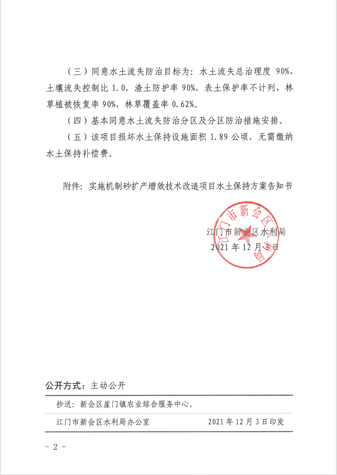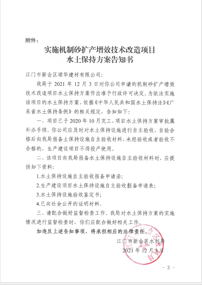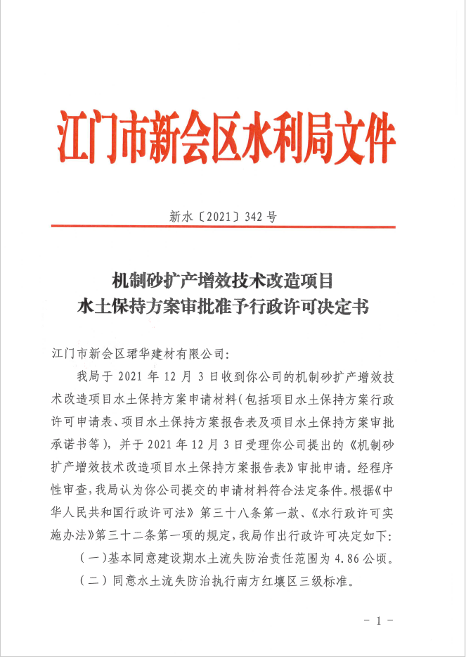 机制砂扩产增效技术改造项目水土保持方案审批准予行政许可决定书