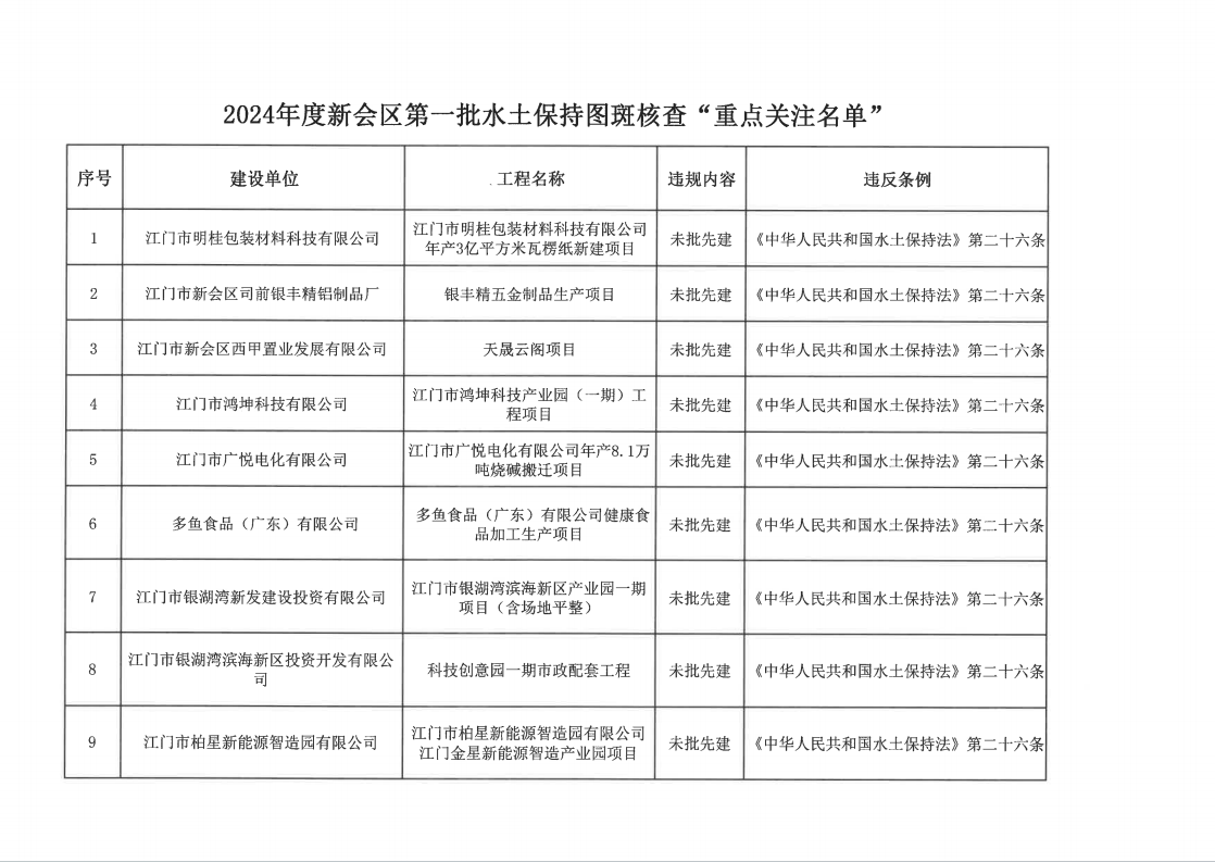 根据《水利部办公厅关于实施生产建设项目水土保持信用监管“两单”制度的通知》(办水保〔2020〕157号)规定,现将2024年度新会区第一批水土保持图斑核查“重点关注名单”向社会公示,详见附件。