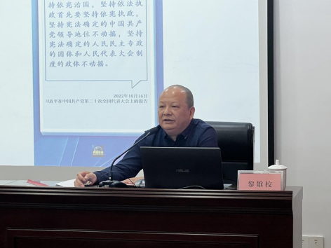 我局邀请签约法律顾问黎雄校律师为全体干部职工开展“宪法宣传周”专题讲座。黎律师结合自身经历,介绍了我国的根本政治制度和权力机关、基本政治制度、人大代表职责以及宪法对特定群体的合法权益保护内容,对于激励教育全体干部职工忠于宪法、遵守宪法、学习宪法、维护宪法,提升退役军人事务系统依法行政水平,促进法治政府建设具有指导作用。