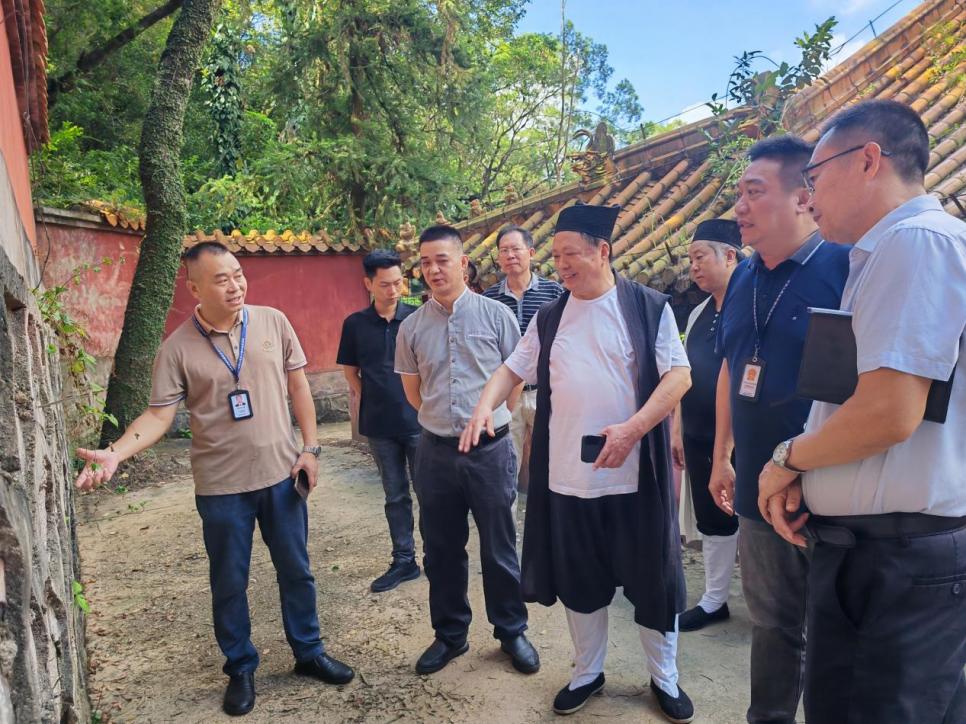 (图2:检查组在紫云观仔细检查挡土墙的结构稳定性)