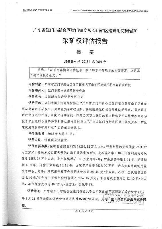 矿采矿权评估报告公示_新会区崖门镇交贝石山