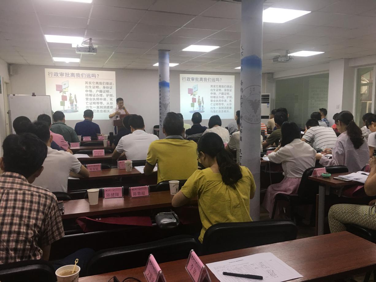 除了内容丰富、精彩生动的理论课堂,本次培训还安排了现场教学。6月11日下午,学员们参观考察了杭州上城区行政服务中心,认真听取了中心负责人对整个办事大厅的总体情况介绍,针对“最多跑一次”改革中各个审批事项实际运转流程,与窗口工作人员进行了业务交流。在座谈会上,双方就实际行政审批服务工作中遇到的问题进行了探讨。