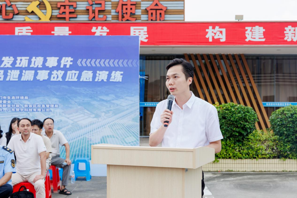 为提高我市应急救援队伍应对突发事件处置能力,提升相关职能部门应对突发环境事件和危化品突发事故应急响应速度、协同作战能力,9月11日下午,新会区人民政府联合市生态环境局在珠西新材料集聚区开展2024年江门市突发环境事件暨珠西新材料集聚区危化品泄漏事故应急演练活动,新会区副区长李志刚出席活动并讲话。