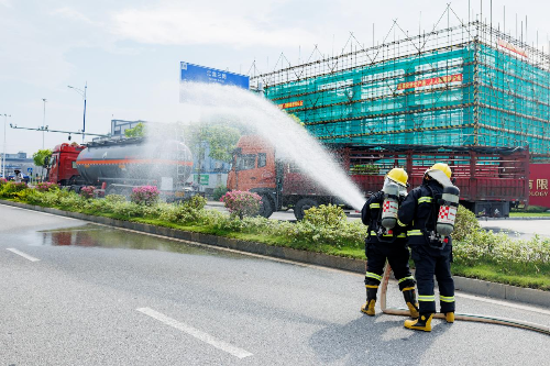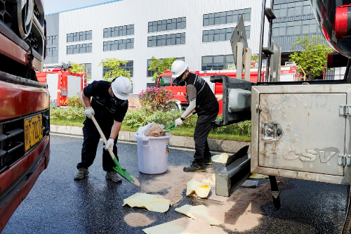 现场及时转移周边群众,对槽罐车采取水喷淋降温措施,现场喷洒泡沫覆盖泄漏的二甲苯,调度空槽罐车开展倒罐作业,同步开启园区防洪渠及雨水渠上下游的橡胶坝,控制水源污染范围,投放吸油毡对污染带进行拦截吸附,阻止污染物的进一步扩散和危害,最终经监测数据显示各项指标正常,成功处置险情,演练全程高效有序,各部门配合默契。