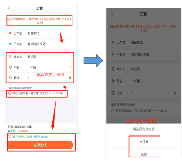6.输入乘车人信息,勾选阅读协议,即可点击“立即支付”进行购买。