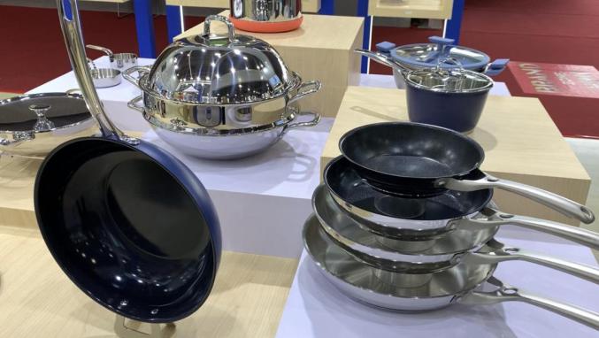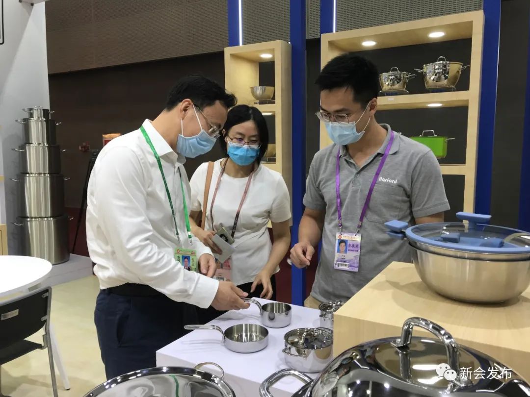 江门市浩盈不锈钢制品有限公司是我区专业生产销售不锈钢厨具的重点企业,在本届广交会上,该公司带来了新开发的产品凹型钢盖炒锅、可立侧耳炒锅和锥型喷PVD奶锅,一经亮相便受到不少采购商的关注。浩盈公司负责人表示,这次参展的产品是他们耗时一年精心筹备的,希望通过这些新产品,让更多的人了解企业的新创意和新技术,让“新会制造”走向世界,进一步打响“新会五金不锈钢”品牌。