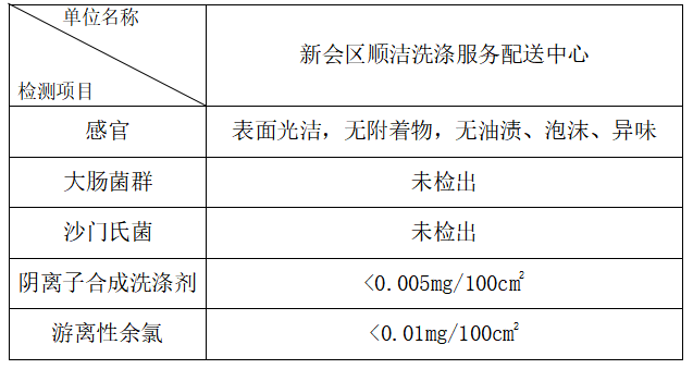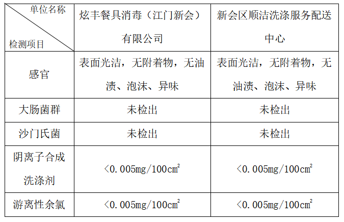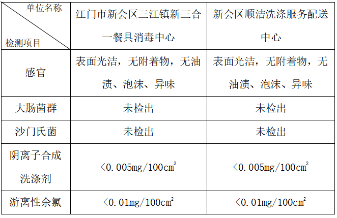 区疾控中心对餐饮具成品进行现场采样,每套餐饮具分别检测5个项目,检测结果均符合卫生标准,具体内容详见附表。