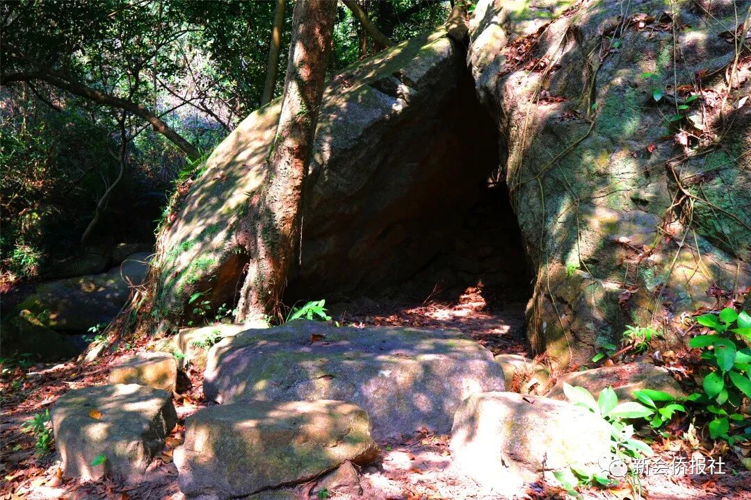 在石涧九龙窟,有一块大致呈不规则三角形的石头,因保留着珍贵的清代石刻字迹而被载入新会县志。石头上面刻着“太清异趣”四个刚劲有力、线条流畅的行书大字,涂抹着红漆,落款为“崖山野人”。崖山野人名叫张总章,号崖山,是新会清代诗人和书法家,著有《崖山诗草》和《奇山山房集》。他留下的“太清异趣”是新会并不多见的古代摩崖石刻,也是圭峰山脉字体最大的古石刻。这四个大字,让平淡无奇的石头添上了笑傲红尘的潇洒,以及百年风雨吹不散的趣味。见字如面,风摇树影,似是故人来。这块刻字的石头,必定附着一个有趣的灵魂。