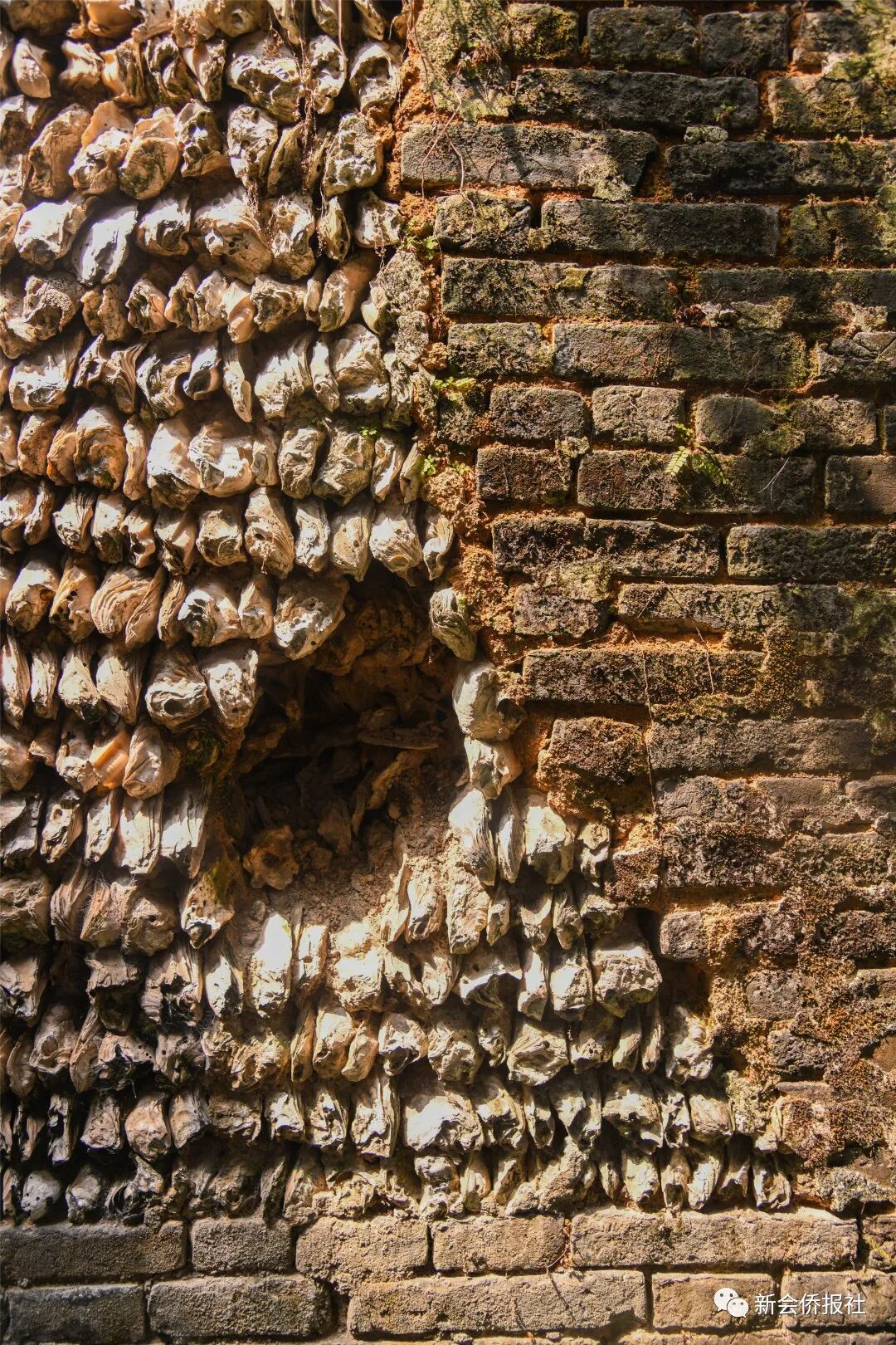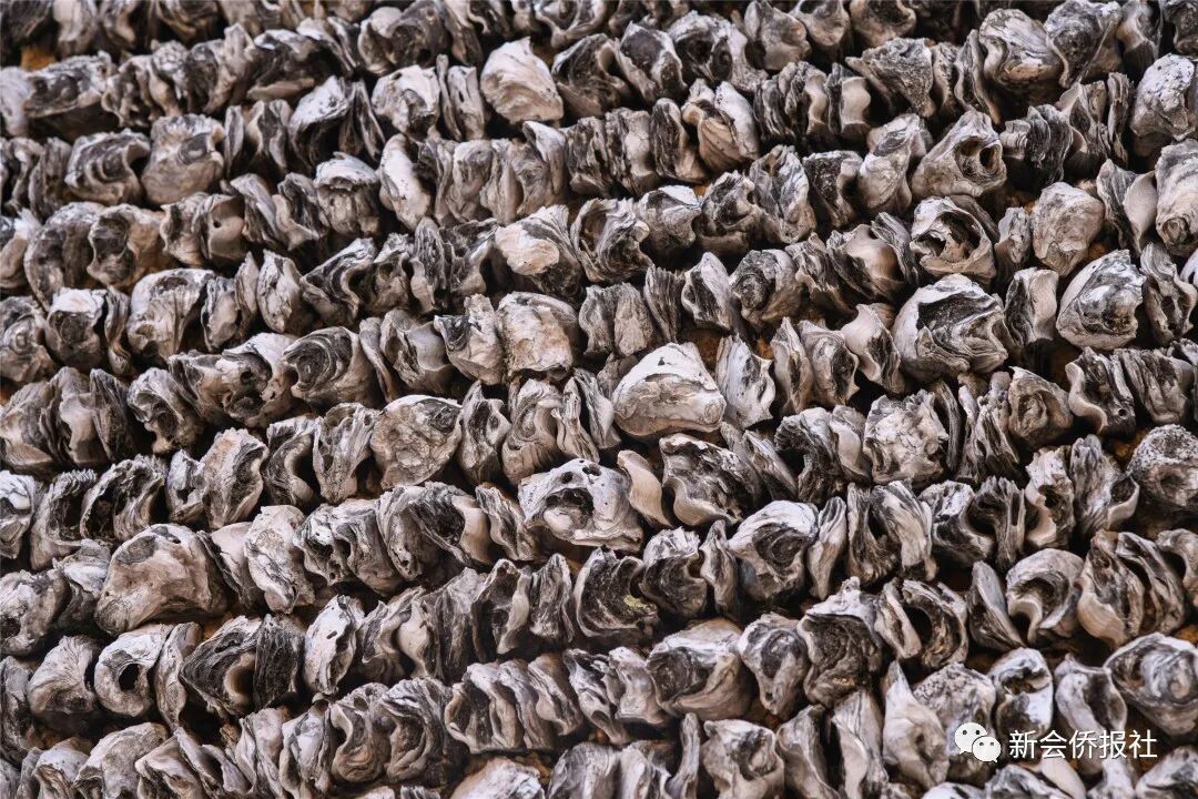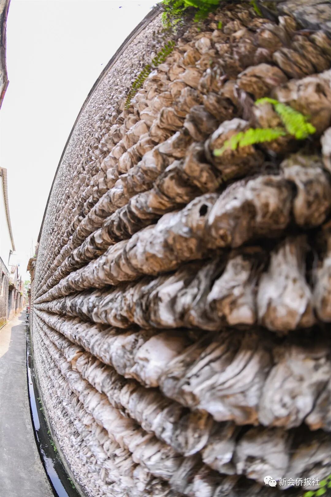 2020年春天,我回到了我的家乡新会小冈梅冈村,寻找儿时记忆中的蚝壳屋。走进村里,就遇见了坐在村里榕树头与村民闲谈的苏太公。太公今年93岁,是村里老人协会的会长,身体仍然硬朗,声音雄亮。我叫了声太公,说明了一下,叫他带路寻找村中仅存的几间蚝壳屋。苏太公说,在上世纪50到60年代,村中仍然有多间蚝壳屋。后来,由于风雨袭击,日久失修,许多蚝壳屋损毁了。目前仅余3间,有2间还只是只有一面蚝墙。太公说,这些蚝壳屋有200多年历史了,墙壁厚,用泥浆、蚝壳砌筑而成,蚝壳墙中间有杉木顶住,坚固结实,冬暖夏凉。我小时候就住的小冈梅冈连西村的小巷子里,旁边就有几间蚝壳屋,小伙伴经常相约到蚝壳屋里玩捉迷藏,数一数蚝墙上有多少只蚝壳,所以对蚝壳屋有一种特殊的感情。爱上摄影后,特色的蚝壳屋吸引了我的关注,假日休闲时,就约朋友到处看看。有一次在会城仁义村新地里,看到了几座完整富有特色的蚝壳屋,眼前一亮,站在那里观察了1个小时。只见二面墙上,密密麻麻铺满整齐巨大的蚝壳。由于时间久远,蚝壳有些发黑,部分蚝壳还出现脱落的痕迹,非常可惜,我从各个角度把它拍摄下来。