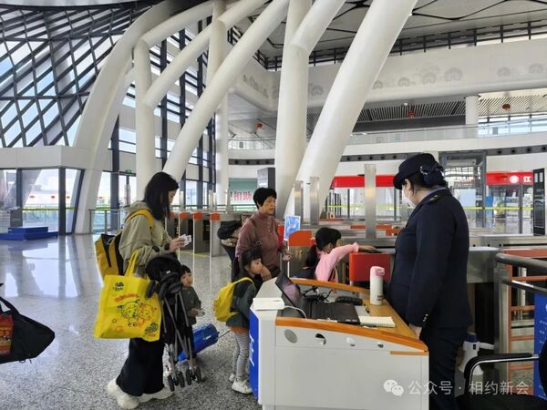 珠西综合交通枢纽江门站也迎来返程高峰。在江门站,记者看到,进出站乘客明显增多,工作人员和志愿者分散在站场各处,为旅客提供帮扶引导、咨询解答等贴心服务,让乘坐高铁的旅客从进站、过安检到候车大厅,再到检票上车等各环节都体验到“一站式”的便捷舒适服务。