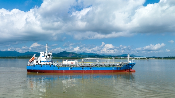 据了解,7999DWT双燃料加油船总长103.88米,型宽19米,型深10米,设计吃水7.2米,载重量7999吨,入级法国船级社(BV),适用于运输燃油和汽油以及其他石油产品。该船配备双机双桨,设有球鼻艏和垂直方尾,具有连续的干舷甲板,甲板上设置的LNG储罐容积约100立方米。其中,货舱区采用双壳结构,有5对货油舱和2个污油水舱,总容积约8450立方米,可满足东南亚沿海复杂水域的各类作业船舶的燃油补给要求。