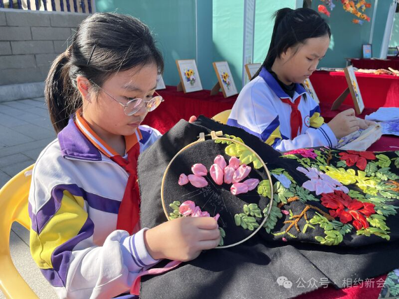 大鳌镇大鳌小学的摊位上,摆放着一幅幅色泽华贵、立体感强的丝带绣作品。该校开展丝带绣少年宫课程已有10年,既提升了学生手眼协调能力,使双手更加灵巧,又提升了学生的耐心和专注力,增进了他们对民间艺术的认识,陶冶个人情操和艺术鉴赏力。