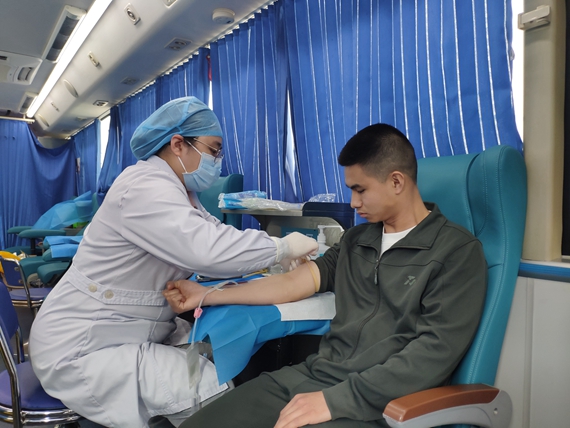 在完成信息登记、政策咨询等报到流程后,退役士兵随即走上献血车。在工作人员的指引下,退役士兵们依次进行登记填表、测量血压、初筛和采血。退役士兵表示,虽然已经脱下军装,但仍然会继续发扬军人的优良作风,用实际行动为社会贡献力量。“退役不褪色,作为一名退役军人,回到家乡能为无偿献血事业作贡献,守护生命,是一件十分有意义的事情。”黄正骞以实际行动践行退役军人的初心使命。