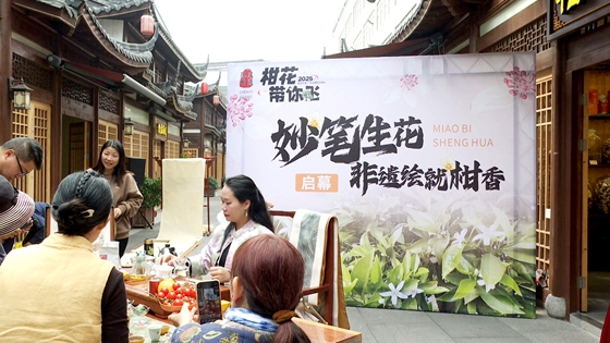 启动仪式在陈皮古道苏州街举行,现场柑花香气弥漫,令人陶醉。一幅幅用白沙茅龙笔精心绘制的柑花画栩栩如生,游客们纷纷驻足欣赏,拍照留念。现场还准备了精致的柑花茶供游客品尝。“我第一次尝试柑花茶,非常清香。柑花和生姜、红糖一起煮茶也很养生,我非常喜欢。”游客张女士说道。