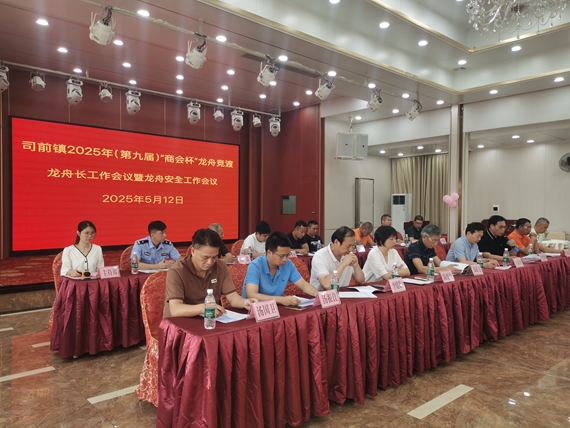 5月12日,新会区司前镇召开2025年(第九届)“商会杯”龙舟竞渡龙舟长会议暨龙舟安全工作会议,就赛事方案、竞赛规则、安全保障及抽签分组等内容进行安排部署,确保端午节龙舟竞渡活动顺利举办。
