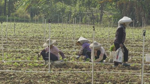 在大鳌镇东卫村的冬种西芹基地,只见自动灌溉系统正喷出水雾滋养着连片的芹菜苗,数名工人正在另一块平整的田块上继续移栽芹菜苗,基地一片忙碌的景象。“我们收割完水稻马上种植芹菜苗,已经种了好几天,一般芹菜苗种植80-90天可以上市,春节前基本可以陆续上市。种植西芹产量比较高,价钱相对稳定,也增加了农民的信心。”种植户梁锦全介绍道。