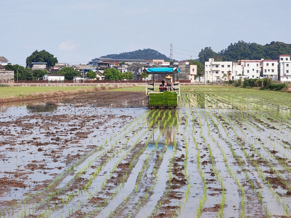 8月5日下午,记者来到古井镇岭北村妍运合作社的水稻田,呈现眼前的是一幅欣欣向荣的农忙画卷。在农机手和给秧员的熟练操作下,插秧机在田间来回穿梭,一株株水稻秧苗整齐有序插到水田里,随风摇曳,焕发勃勃生机。“今年要种植120亩晚稻,每天安排2台插秧机下田,三天就能全面完成插秧工作。”妍运合作社负责人林立峰说,下一步,他们将做好科学施肥、田间管水、病虫害综合防治等工作,确保水稻高产、稳产。