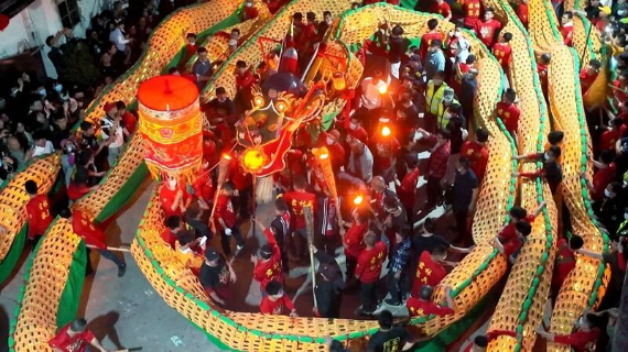 2月20日,农历大年初四傍晚,江门市级非物质文化遗产代表性项目——三江龙乡游龙,在三江镇联和村仁和里“龙”重登场,长达150米的金龙在夜色中翻腾起舞。