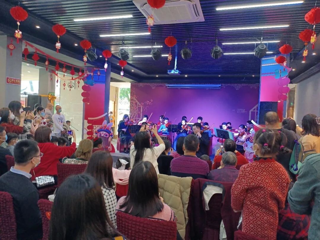新会区提琴音乐沙龙是新春的第一场艺术沙龙。下午3时,新会君悦提琴室内乐团的一群小小演奏家轮番上台,奉上《卡农四重奏》《欢乐颂》《今夜感觉我的爱》《新春乐》《如愿》等近二十首精彩曲目,用优雅的琴声奏响新春的快乐,向齐聚一堂的观众朋友们,送上辞旧迎新的美好祝福。