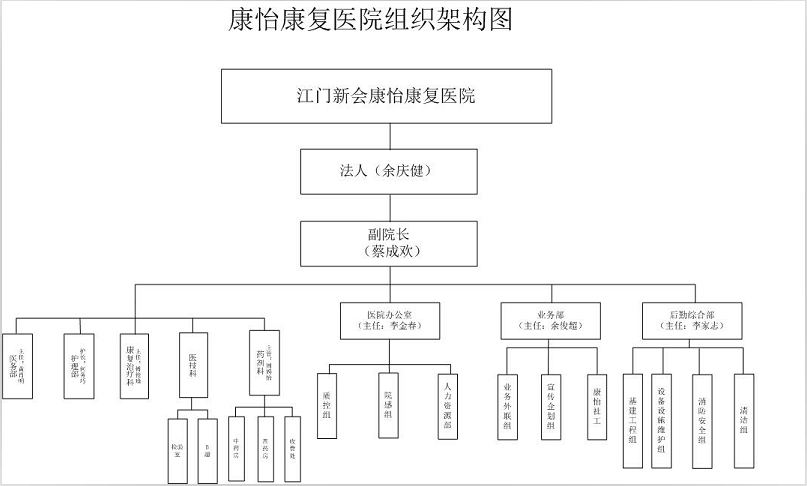康复医院为营利性民营医院,本院巨资引进国内外先进检测检验仪器和各类康复医学设备,设置有康复评估室、运动治疗室、作业治疗室、物理因子治疗室、言语治疗室、中医传统针灸推拿室、中药薰药室等9个专业康复治疗室,及中西药房、医学影像、医学检验、超声心电图室等辅助功能科室。院内治疗设备齐全,并设无障碍设施。注册资金:430万元,法定代表人:余庆健