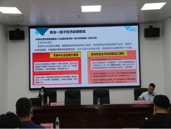 结合新会区中小微企业服务月的开展,为切实解决企业生产经营中遇到问题,全力支持企业发展,给企业提供更便捷、更精准的暖企惠企安企服务,区科工商务局于6月30日下午到古井镇举行扎实稳住经济一揽子政策措施及中小微企业诉求快速响应平台政策宣讲会议。会上,我局对新会一揽子经济政策进行解读,并对中小企业申报技改资金、申请省级专精特新企业等相关政策进行宣讲。