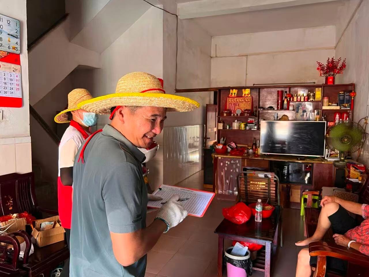 烈日当空,攻坚队伍的工作人员手持记录板与各色标识贴纸,再次穿梭在新沙村的街头巷尾。此次行动以 “一户不落” 为目标,按区域划分小组、各司其职,采用“红黄绿”三色贴纸对应蚊媒“高中低”风险的分类方式,逐户开展排查。入户后,工作人员对照“积水情况、蚊虫密度、环境整洁度”三项标准,通过张贴标识精准掌握每户蚊虫滋生风险,为后续精准施策、科学防控筑牢基础。