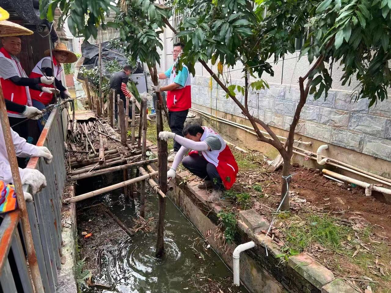 排查之后便是行动,各个小组成员分工明确、干劲十足,人人手持镰刀、铁锹等工具,迅速投入环境清理工作。他们将路边的杂草、散落的生活垃圾、枯枝落叶逐一归集,合力运上垃圾车;遇到村民房屋内堆积已久的大件废弃瓶罐,大家更是齐心协力抬搬清运,即便汗水浸湿衣裳也毫不退缩,势必要击退这些影响环境的“顽疾”,齐心协力推进整治。
