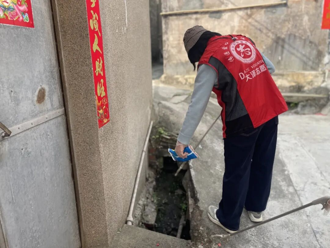 古井镇组织志愿者们手持铁钳、扫把、垃圾袋,逐条大街小巷进行房前屋后的垃圾清理,重点清扫积存的垃圾、枯枝落叶和容易孳生蚊虫的隐蔽角落,确保“无死角、全覆盖”;对废旧轮胎、花盆等容易积水容器进行清理,确保“清干净、倒彻底”,从根源上铲除蚊虫孳生的“温床”。