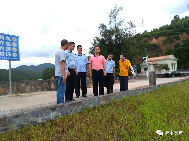 李福达一行实地查看了万亩水库水质、沿岸保洁、水库安全管理情况,详细了解河道治理相关工作开展情况,并听取了双水镇镇级副总河长、镇长吴志斌对河道综合整治情况和河长制“五清”专项行动进展情况的汇报,听取水库防洪工程、库区管理等工作开展情况。 李福达对双水镇河长制工作表示肯定,并提出了四点指导意见: 一是汛期期间,水库安全至关重要,要把水库安全放在水库管理的重要位置来抓,要提前谋划,全面做好防洪准备; 二是要加强巡查,全面排查安全隐患; 三是要加大库区山林巡护,认真落实库区管理制度,全面排查清除污染源,维护好库区环境; 四是要加大库区环境提质建设,严格落实区级部署,按照“只能更好、不能变坏”的原则,努力实现“河畅、水清、堤固、岸绿、景美”的总目标。