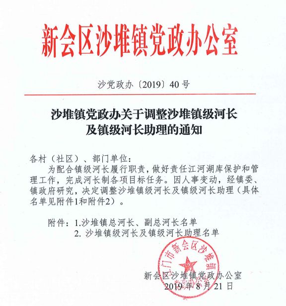 沙堆镇调整河流河长和河长助理