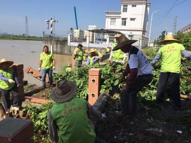三江镇内有市级河流3条,包括潭江、江门水道、礼乐河;区级河流3条,分别是虎坑水道、新前水道和新妇河。镇级河流有31条,全镇河流总长140公里。“因特殊的水文环境,上游带来的垃圾,很容易在三江堆积,沿岸环境很容易被污染,当地党委政府环保压力大”,今年67岁的梁福池说。