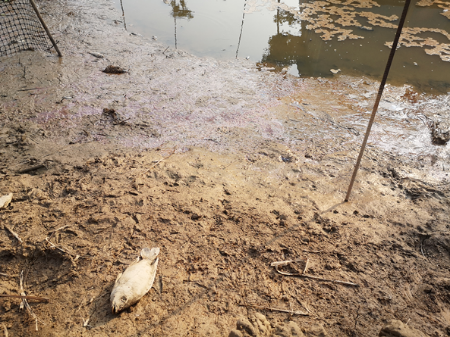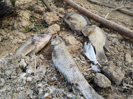 ▲柑肉残渣导致河流鱼类及鱼塘养殖鱼死亡